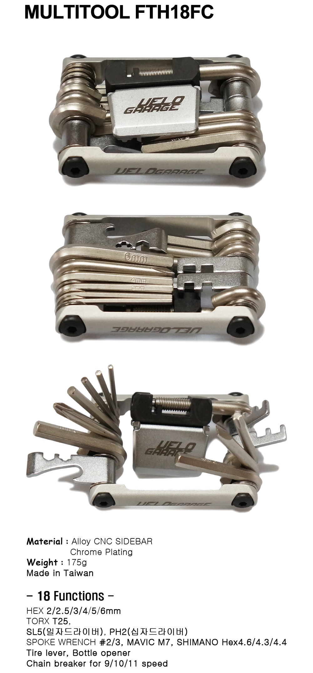 벨로게러지[VELOgarage] 멀티툴 FTH18FC[MULTITOOL FTH18FC] 휴대용 자전거 공구/18가지(재고 특판)