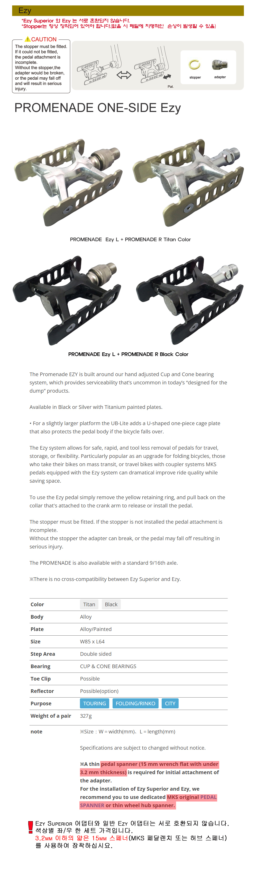 MKS 프로메네이드 원사이드 이지[PROMENADE Oneside-Ezy] 페달 왼쪽 착탈식/분리형 미니벨로/브롬톤