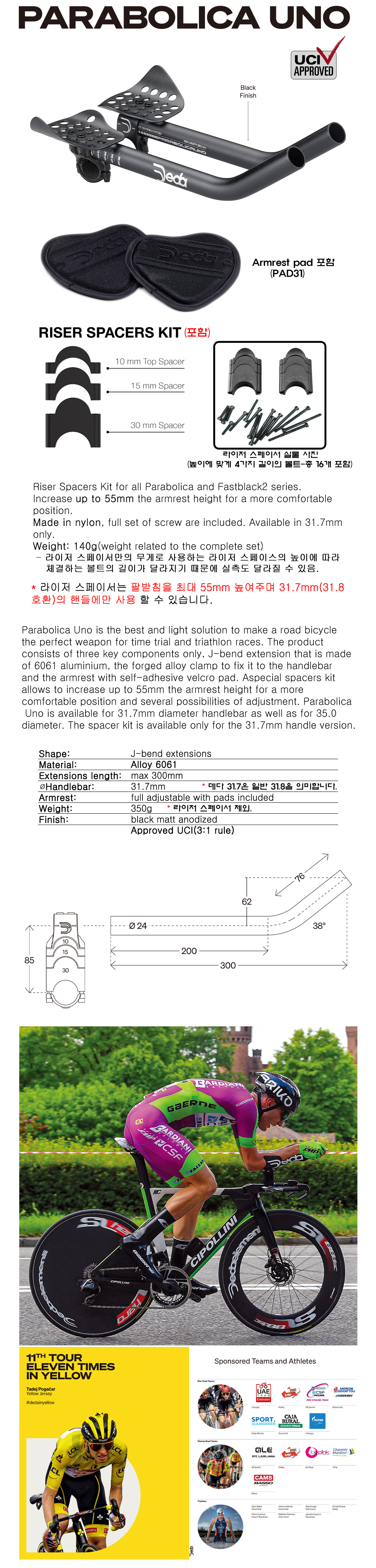데다[DEDA] 파라볼리카 우노[PARABOLICA UNO] 익스텐션바 U바/TT바 트라이애슬론